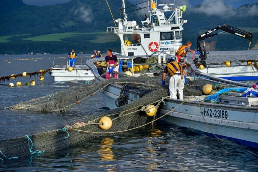 網入れ・網交換・水揚げ等沖に出ての作業になります。